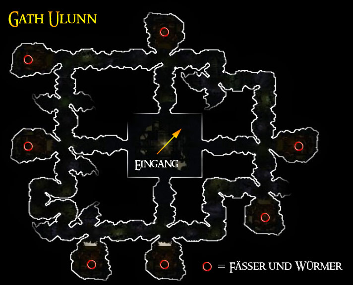 In Gath Ulunn, einer Höhle, deren Eingang irgendwo in den Ork-Lagern im Norden von Gathbúrz liegt, befinden sich Orks und Würmer. Ningloril hat Euch gebeten, Verbündete zu suchen und die Würmer und Orks in Gath Ulunn zu besiegen und Hintergrund Ningloril hat erfahren, dass die Orks nach dem Angriff auf Dol Guldur jetzt versuchen, |