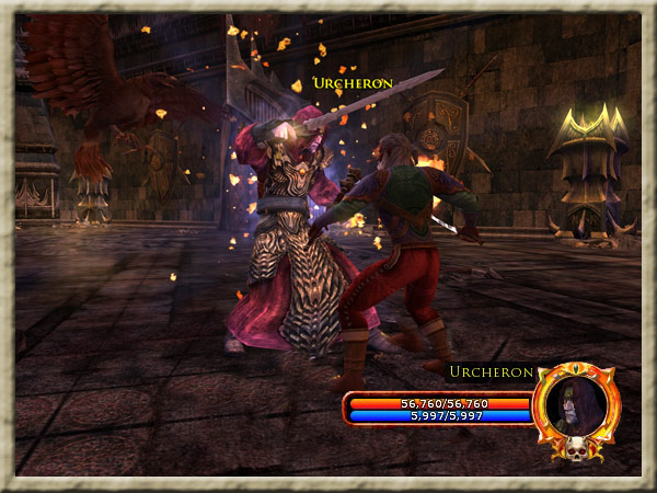 Wenn man ihn nicht unterbricht, versucht Urcheron ab und an eine Feuerspur zu legen. Dieser Feuerspur sollte man dann ausweichen. Auch legt ab und an ein Feld auf den Boden aus dem Feuer kommt