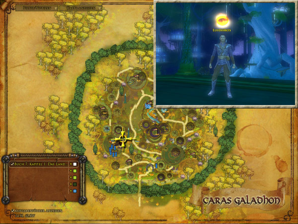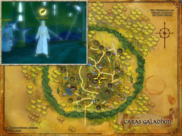 | Sprecht mit Húrien bei Celúrlin, dem Weissen Brunnen Caras Galadhons Sprecht mit Luidhros auf dem Telain Galadhrim Sprecht mit Anglamel auf dem Telain Melthin |