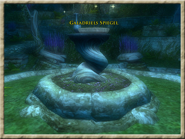 Der Spiegel Galadriels befindet sich in ihrem Garten in Caras Galadhon. Galadriel hat Euch aufgefordert, in ihren Spiegel zu blicken, um zu erfahren, Hintergrund Galadriel hat in ihrem Spiegel besorgniserregende Visionen gesehen, und nun ist sie beunruhigt über das, |