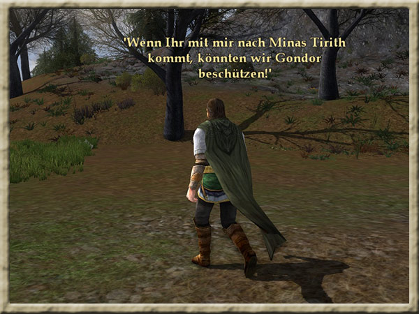 Boromir ist Euch einen Teil des Weges den Amon Hen hinauf gefolgt und möchte gerne mit Euch sprechen. |