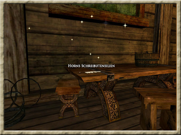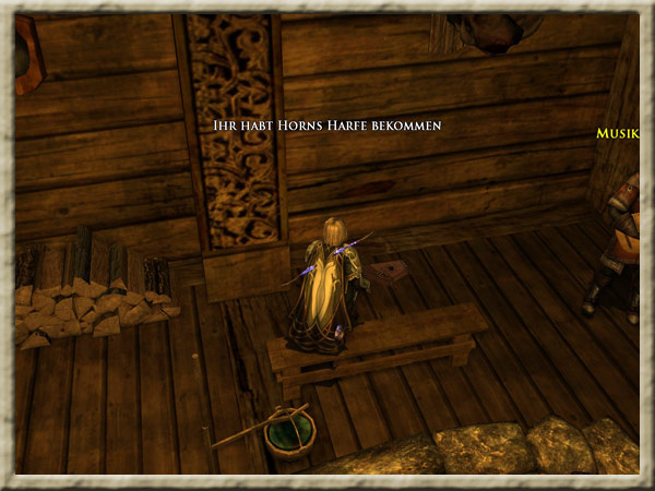 | Besorgt Horns Harfe aus Stangards Taverne Besorgt Horns Schreibmaterial aus Wadas Haus |