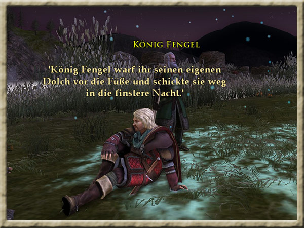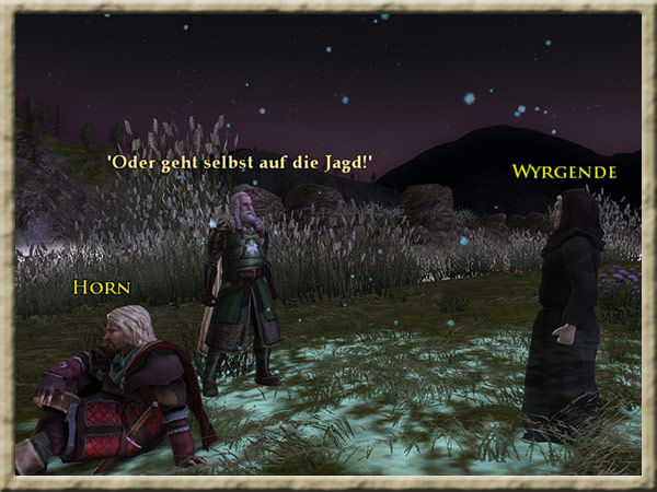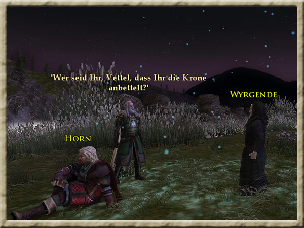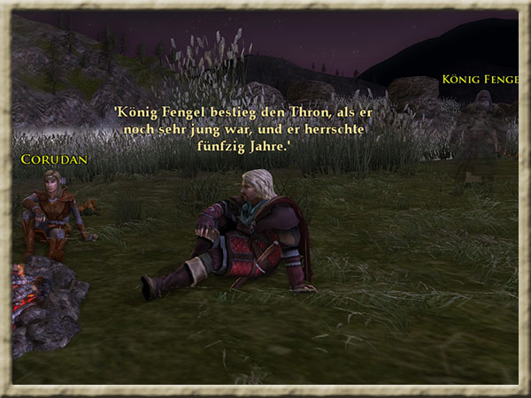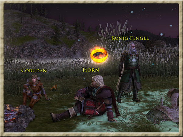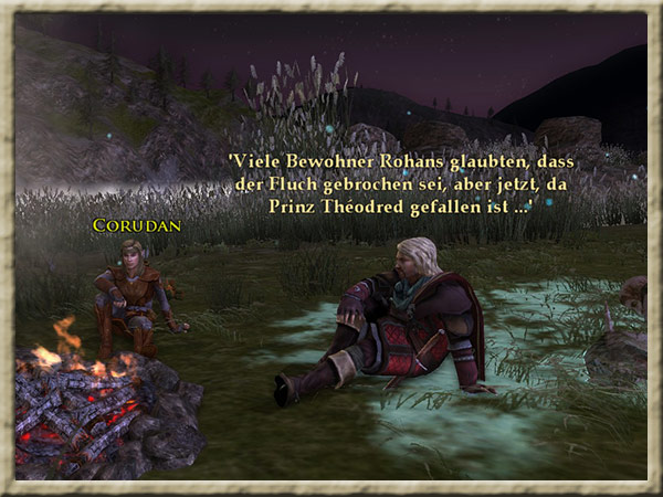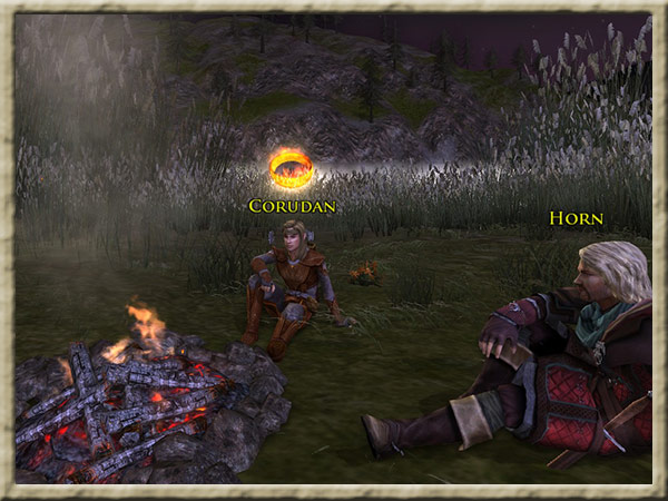 Corudan wartet am Fluss, an dem Ihr Euer Nachtlager aufgeschlagen habt, auf Euch. Er möchte mit Euch sprechen. Hintergrund Ihr seid mit dem Boot in Begleitung von Nona, Horn und Corudan den Anduin hinuntergefahren, |