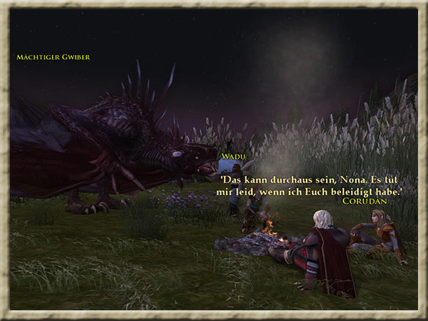 | Sprecht mit Corudan am Lagerfeuer |