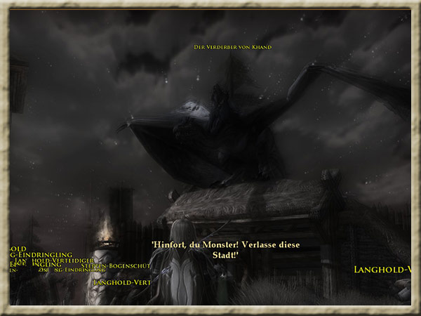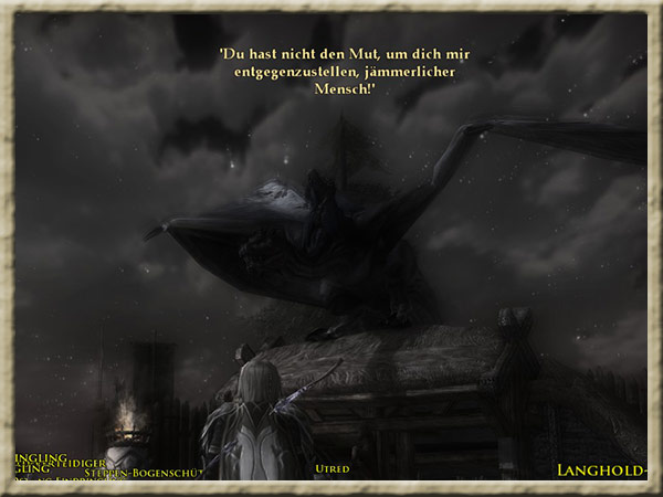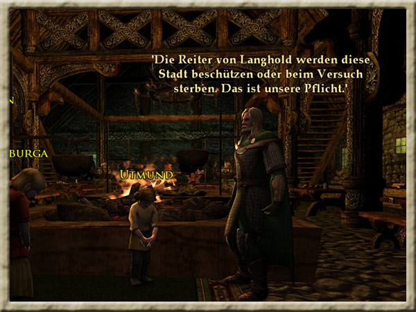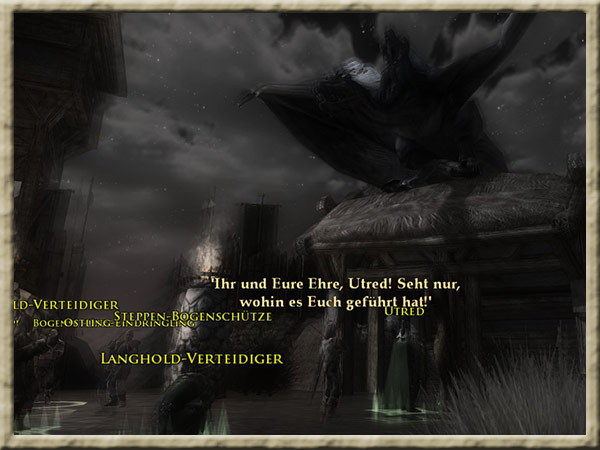 Than Utred von Langhold muss eine Entscheidung treffen. Ihr solltet Euch mit dem Than von Langhold unterhalten. Hintergrund Langhold steht vor einem beunruhigenden Angriff durch vereinte Truppen der rachsüchtigen Räuber und der blutdurstigen Ostlinge, |