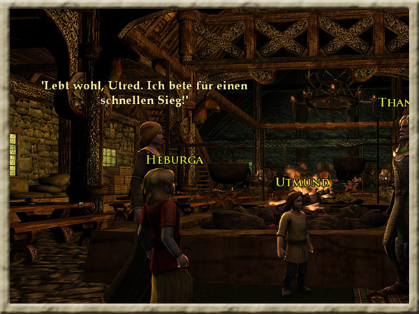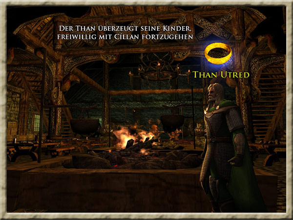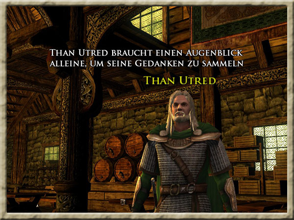Than Utred befindet sich in der Methalle von Langhold. Ihr solltet genau auf die Unterhaltung des Than mit seiner Familie achten und ihnen dann nach draußen folgen, |