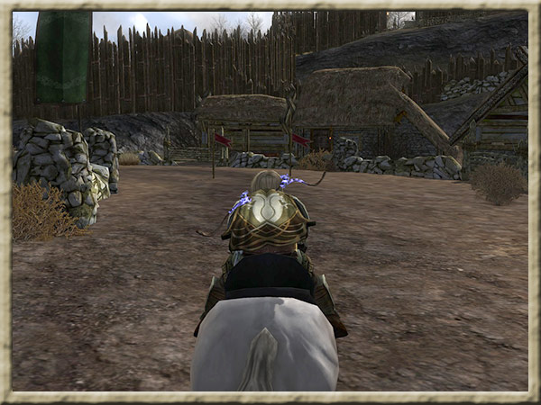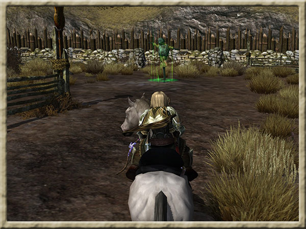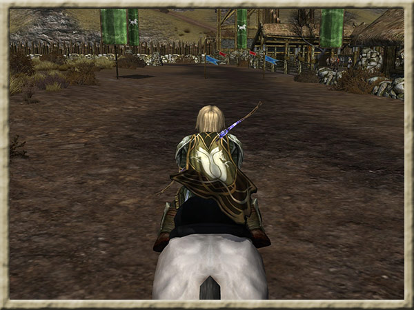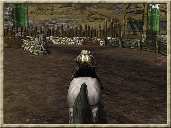 Folgt Seocas Anweisungen, während Ihr um den Turnierplatz reitet und lernt, Euer Ross zu steuern. Ihr müsst zwei ganze Runden in der äußeren Spur reiten, um mit der Ausbildung fortzufahren. |