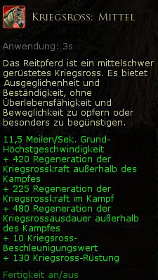 | Das Schlachtross findet Ihr in Eurer normalen Liste der Pferde ganz am Ende. Legt Euch am besten gleich ein Icon auf die Schnellstartleiste |