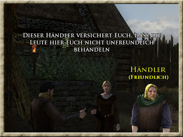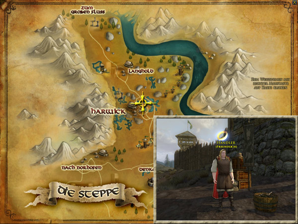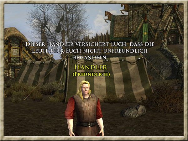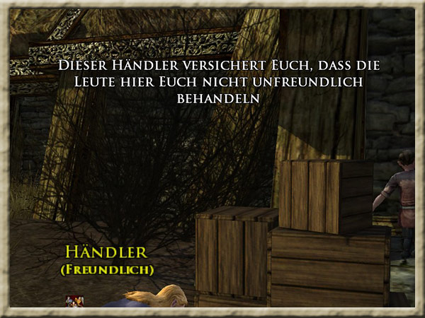 Ihr findet die freundlichen Händler vor der Bank, der Auktionshalle und der Handwerkshalle in Harwick. Ihr solltet mit jedem der freundlichen Händler sprechen und Euch mit den Diensten vertraut machen, Hintergrund Zwischen all der Feindseligkeit, mit der Euch bisher in Harwick begegnet wurde, habt Ihr einen Freund gefunden! |