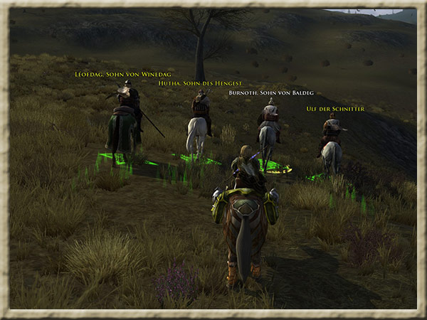 Sprecht mit Burnoth. Hintergrund Ihr habt die Vier Reiter zu einem Lager der Ostlinge begleitet, wo Burnoth hofft, Aldor Harding beweisen zu können, |