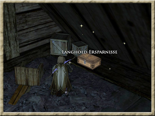 Die Ersparnisse der Flüchtlinge sollten sich noch irgendwo in den Ruinen von Langhold befinden, Ihr solltet in den Häusern von Langhold nach jeglichen Ersparnissen suchen, die das Feuer überlebt haben könnten. Hintergrund Cíllan versucht nun verzweifelt, eine große Summe Goldmünzen zu beschaffen, und denkt an die Reichtümer, |