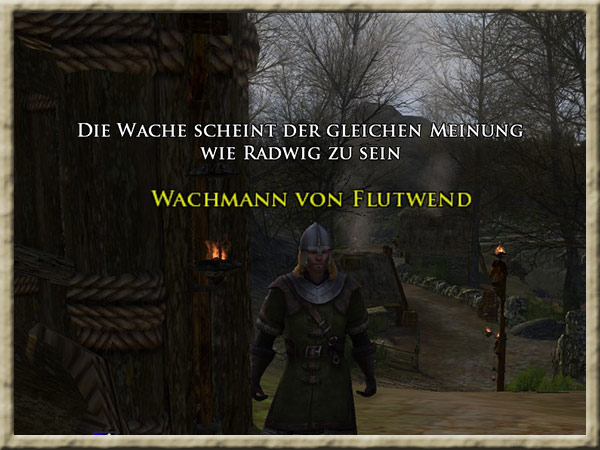 | Sprecht mit den 3 Wachen an jedem der Tore von Flutwend | ||