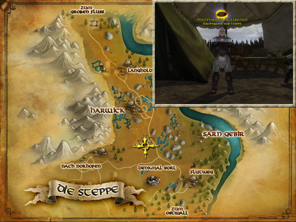 Hauptmann Agelmund ist in Feldburg stationiert, um dafür zu sorgen, dass die Festung vor Gefahren von außen geschützt ist. Um die Steppe erfolgreich zu verteidigen, ist es unbedingt nötig, solche Kampfgruppenanführer wie Urush auszuschalten. |
