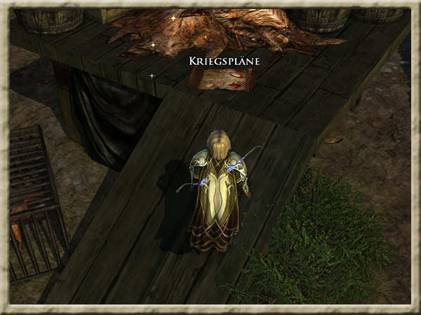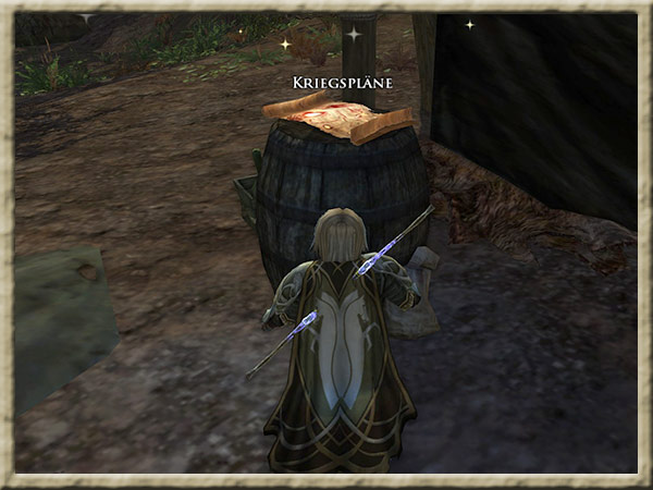 Angriffspläne gibt es im Orklager Nîn-stazg. Ihr solltet die Pläne der Orks sammeln, damit sich Flutwend auf einen Angriff vorbereiten kann. Hintergrund Nachdem die Ostlinge aufgehalten wurden, solltet Ihr Than Radwig folgen und einen Schlag gegen die Orks führen, |