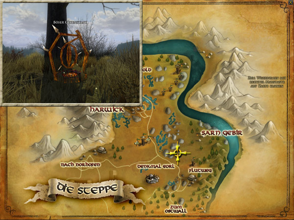Der Hügel Cracabor ist der höchste Punkt in der Steppe und liegt gleich südlich von Wódscrafen und nördlich von Twickenburg. Ihr solltet auf Cracabor hinaufsteigen und seine Höhe erkunden. Hintergrund Crebain sammeln sich bei Cracabor und fliegen zu den umliegenden Landen, um dort alles und jeden zu bespitzeln. |