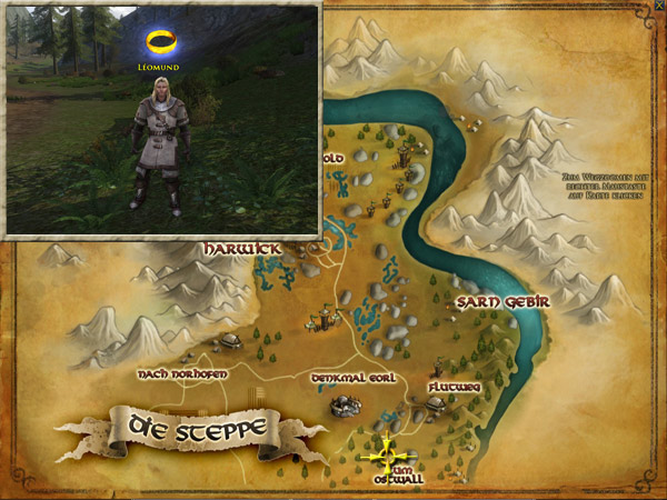 Léomund befindet sich gleich südlich der Südgrenze der Steppe, am Ostwall. Euch wurde aufgetragen, Léomund am Ostwall gegen die Orks beizustehen. Hintergrund Eine Gruppe Rohirrim hat sich nach südlich der Steppe begeben, um der Gegenwart der Orks am Ostwall nachzugehen. |