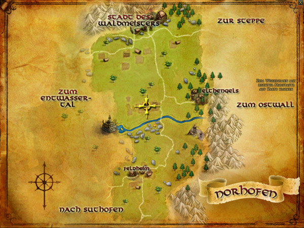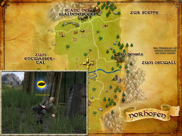 Die gefährdeten Höfe liegen im Südwesten des Außenpostens der Händler. Ofrith hat Euch gebeten, vorsichtig die Höfe im Westen nach Anzeichen von verbleibenden Bauern zu durchsuchen, Hintergrund Rauch und Kampfgeräusche kommen bis zum Außenposten der Händler im Westen. |