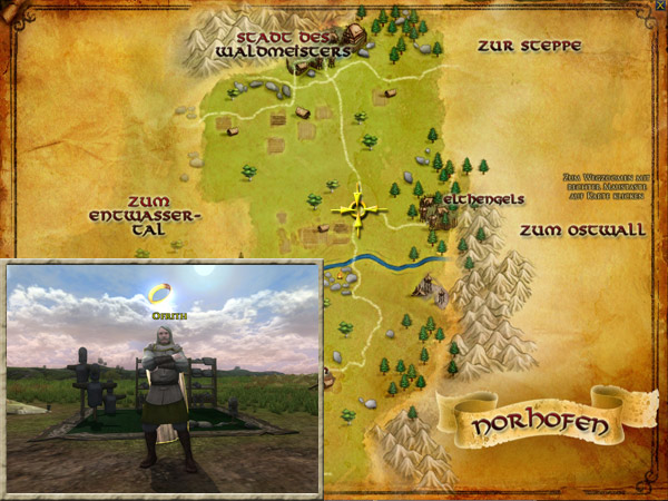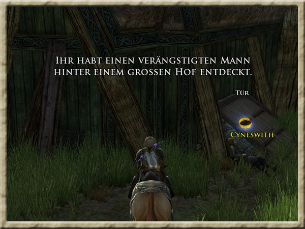 Die gefährdeten Höfe liegen im Südwesten des Außenpostens der Händler. Ihr habt bei einem der großen Hofanwesen einen Mann entdeckt, der Eure Hilfe zu brauchen scheint. |