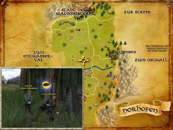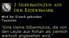 Der Rohirrim-Kundschafter befand sich auf dem Weg vom Anwesen aus nach Süden, über den Fluss hinüber. Cyneswith empfiehlt Euch, mit dem Rohirrim-Kundschafter zu sprechen und in Erfahrung zu bringen, was für Hilfe er benötigt. Hintergrund Ein Rohirrim-Kundschafter hat Cyneswith angesprochen, weil er eine kluge und starke Person als Helfer suchte. |