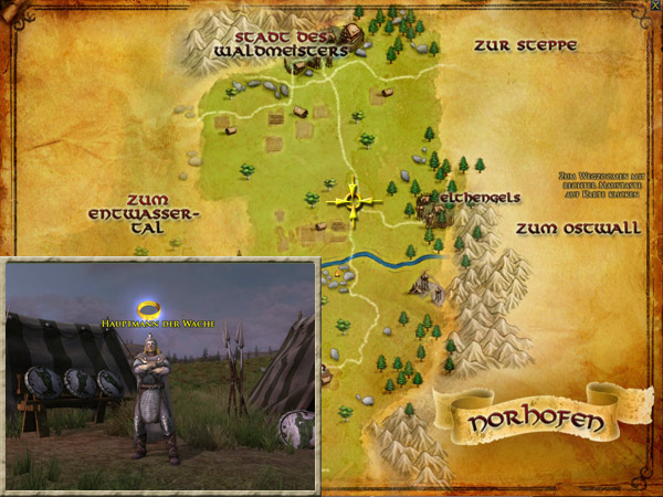 Sprecht mit dem Wachhauptmann im Händlerlager |