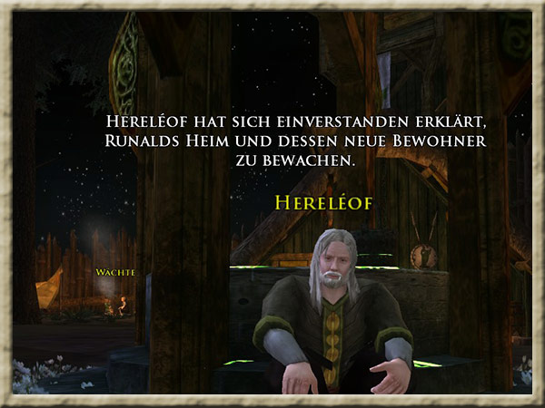 Hereléof befindet sich am Brunnen im westlichen Bereich des Dorfs Elthengels. Runald möchte, dass Ihr Hereléof darum bittet, auf sein Heim aufzupassen, wenn er fort ist. |