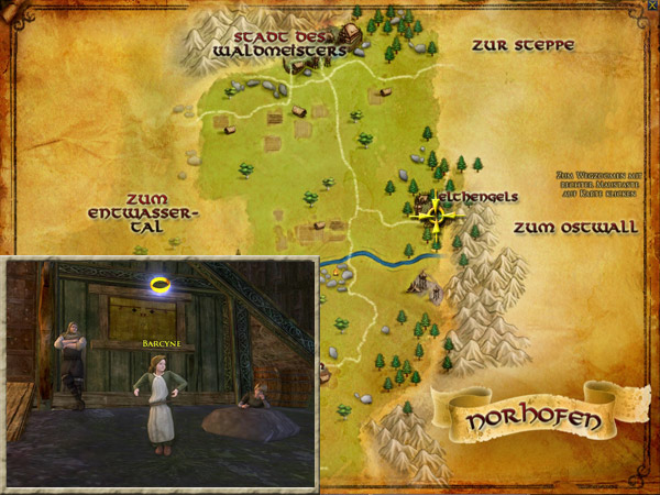 | Sprecht mit Runald nahe dem südlichen Tor von Elthengels |