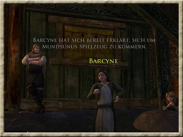 Barcyne befindet sich in seinem Heim, im südöstlichen Teil des Dorfs Elthengels. Mundsúnu hat Euch gebeten, seinem Freund Barcyne seine Puppe zu überbringen. |