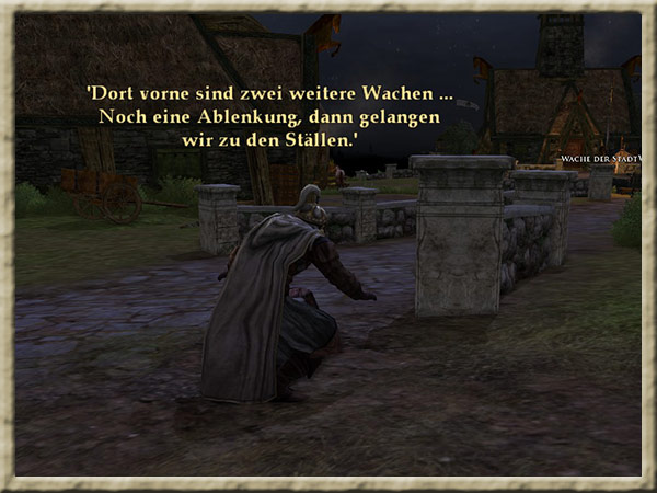 Burnoth möchte, dass Ihr die Wachen ablenkt, die gegenüber dem Lager seiner Mitstreiter stationiert sind. Helft den Reitern der Vier dabei, während ihrer Flucht nicht gesehen zu werden. |