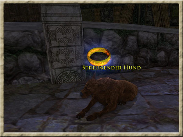Lenkt den streunenden Hund mit dem Trockenfleisch von Burnoth ab. |