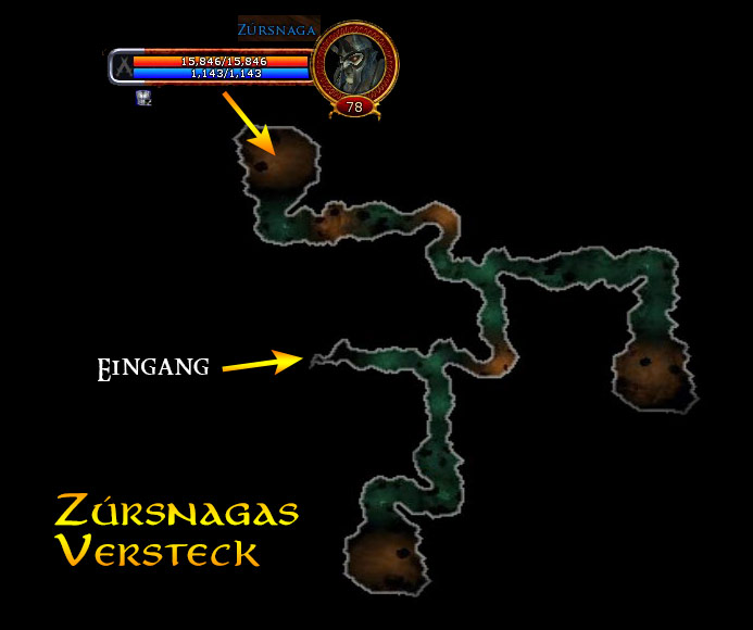 Betretet die Höhle, in der sich Zúrsnaga versteckt |