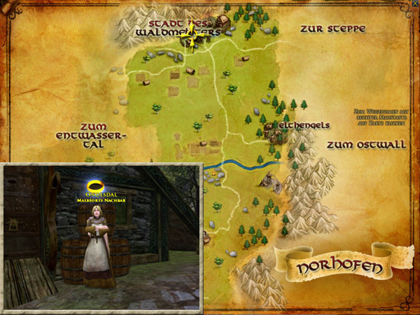 Walnoth wartet in der Mitte der Stadt des Waldmeisters, nahe dem Brunnen, östlich von Ondesdals Heim. Walnoth erwartet eine Nachricht darüber, wer Malbéort besucht hat und dabei von Ondesdal gesehen wurde. |