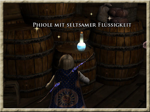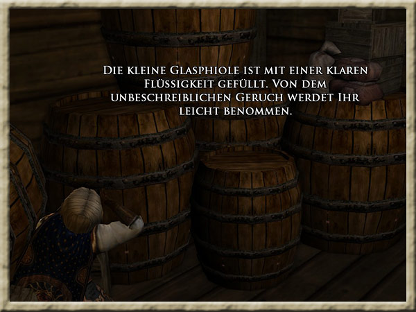 Die Phiole befindet sich nahe Cetelgat in der Küche des Greven. Cetelgat hat Euch Informationen zu der Phiole gegeben. Die Phiole sollte genauer untersucht werden, um dessen Inhalt festzustellen. |