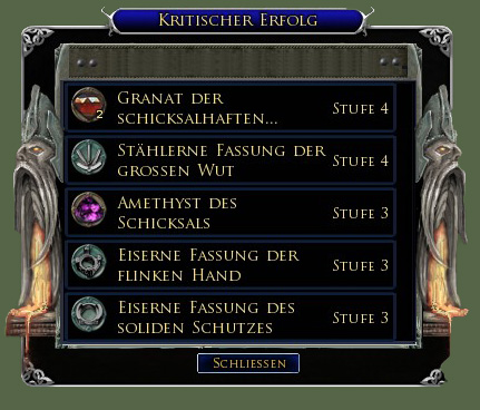 Ab und an bekommt man allerdings einen kritischen Erfolg beim kombinieren. Hier das Ergebnis aus 5 Stufe 1 Relikten: |
