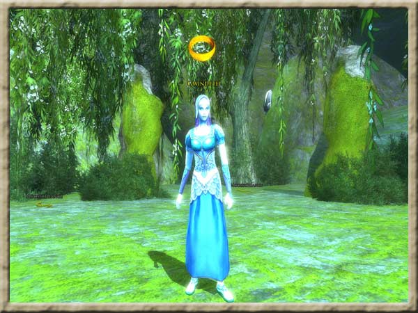 Tief in den verwinkelten Landen entlang der Ufer des Nenuial, bekannt als der See Evendim, liegt eine Grotte, deren Eingang hinter einem Wasserfall verborgen ist. Aber es ist keine gewöhnliche Höhle, nein, es ist das Heim von Gwindeth, der Blauen Dame von Evendim. Wer oder was sie ist, bleibt rätselhaft, aber sie hat schon unzählige Jahre in Gwindethrond gelebt und galt als Freund der Könige von Arnor, angefangen von Elendil bis über Amlaith von Fornost, dem ersten König der Arthedain. Einige glauben, sie sei mit den Flussmaiden verwandt, aber ihr Temperament ist viel stärker ausgeprägt als das der Flussmaiden. Vielleicht ist sie aber auch einer der Botschafter der Valar und hatte vor langer Zeit beschlossen, in Mittelerde zu bleiben. |