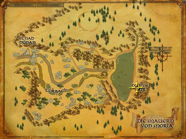 Schon seit Anbeginn Mittelerdes lag das größte Königreich der Zwerge immer unterhalb des Nebelgebirges in den Hallen, die man Khazad-dûm nennt. In den Tagen, als noch eifrig Handel zwischen den Zwergen und den Elben von Eregion und Lothlórien getrieben wurde, führte eine wichtige Handelsroute durch das Westtor, auch Hulstentor genannt, durchquerte Khazad-dûm und wand sich dann im Osten durch das Große Tor im Schattenbachtal. |