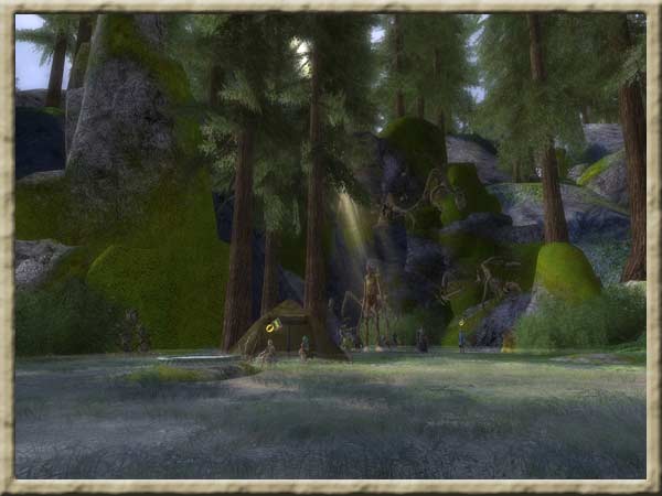 In den Wäldern um den Evendim-See findet sich ein ruhiger und uralter Hain, der den Namen Traufenspitz trägt. Die Geschichte besagt, dass vor langer Zeit ein Ent, einer der mächtigen Baumhirten aus Fangorn, hierher kam, um nach etwas zu suchen, dass sein Volk verloren hatte. Es kann sein, dass er noch immer dort verweilt, denn für dieses älteste aller Völker ist ein Zeitalter nur ein kurzer Augenblick und der Traufenspitz ist seit langer Zeit ein Tal des Friedens. |