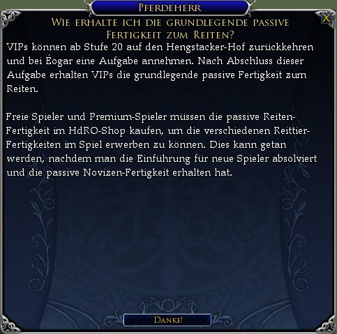 erhalte ich die grundlegende passive Fertigkeit zum Reiten ?