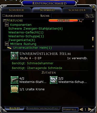 Rüstungsschmiedekunst - Geschicklichkeitsstufe: 4 |